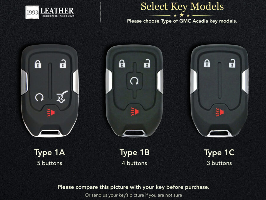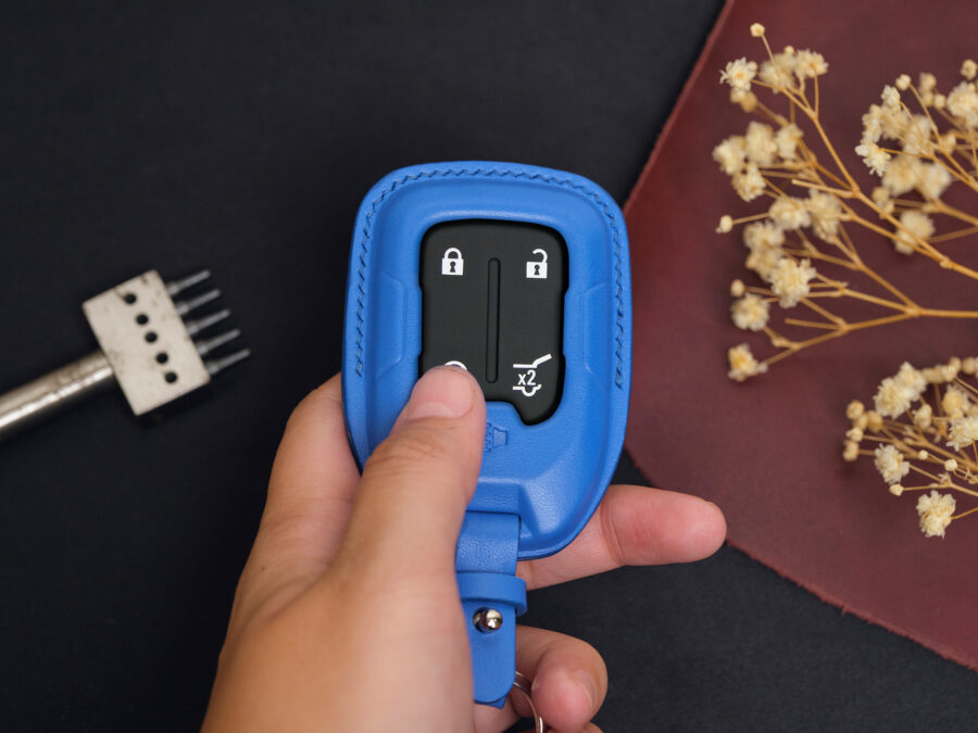Let’s elevate the style of the GMC Acadia key with the handcrafted leather collection from our shop – a refined accessory that perfectly combines protection and elegance. The GMC Acadia, a mid-size SUV known for the strong, modern and comfortable design with distinct American character, deserves a leather key fob cover that reflects the owner’s personality and taste. GMC Acadia key fob cover. Each piece of our product is carefully crafted from superb leather, creating a subtle and impressive highlight that turns the key into a symbol of style and sophistication.