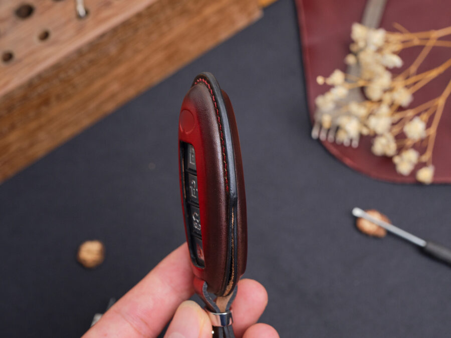 Visit leather1993.com and click “Buy Now” to secure your Infiniti Q50 Q60 Q70 Key Fob Cover. By choosing the timeless Veg-tan leather or one of our custom finishes, you’re selecting elegance and lasting excellence.