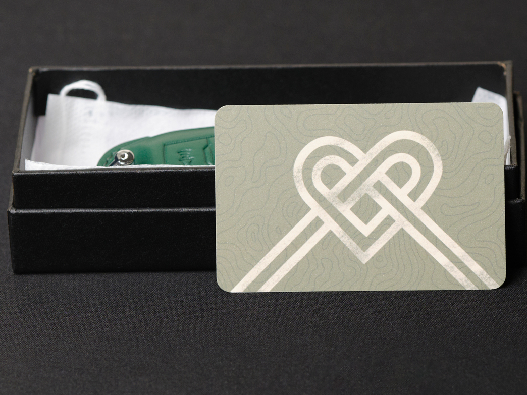 The Love message gift card is designed with the image of a heart knot. So, it is a symbol of connection, commitment, and enduring love. Set against a soft gray-blue background, the design is outstandingstands out as a subtle and impressive message. The front of the card is where customers can write a heartfelt message to the loved one. We will place inside the box along with the car key fob cover. When the recipient opens it, they will be pleasantly surprised by the thoughtful preparation and the warmhearted gift inside.