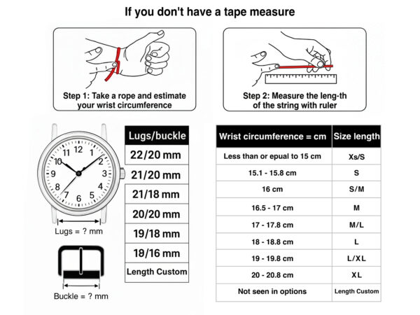 The olive perforated leather strap is designed for fitting perfectly with adapters, maintaining no looseness, no wobbling at all. Specifically, it fits multiple Apple Watch sizes: 38 / 40 / 41 / 42 / 44 / 45 / 49mm. To select the best watch strap, leather enthusiasts should first determine the correct lug width by measuring the space between the two lugs on the watch case. The most important step is choosing the appropriate strap length (with 3 standard sizes including S, M, or L) based on wrist circumference to ensure a comfortable and secure fit.