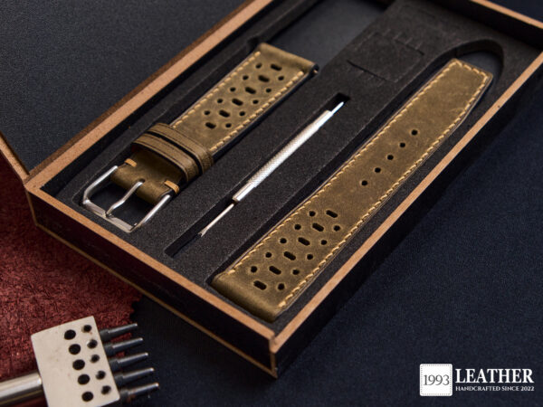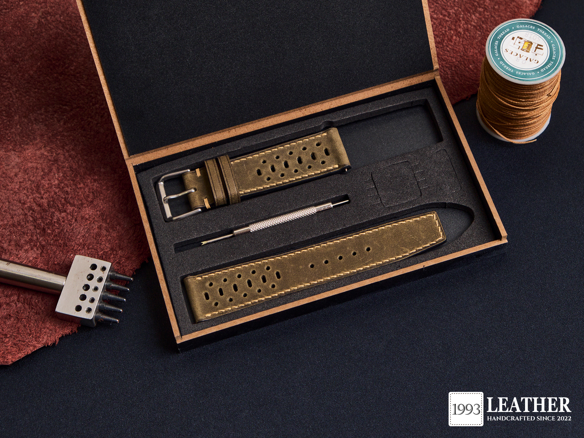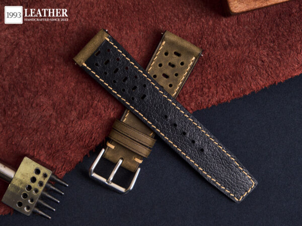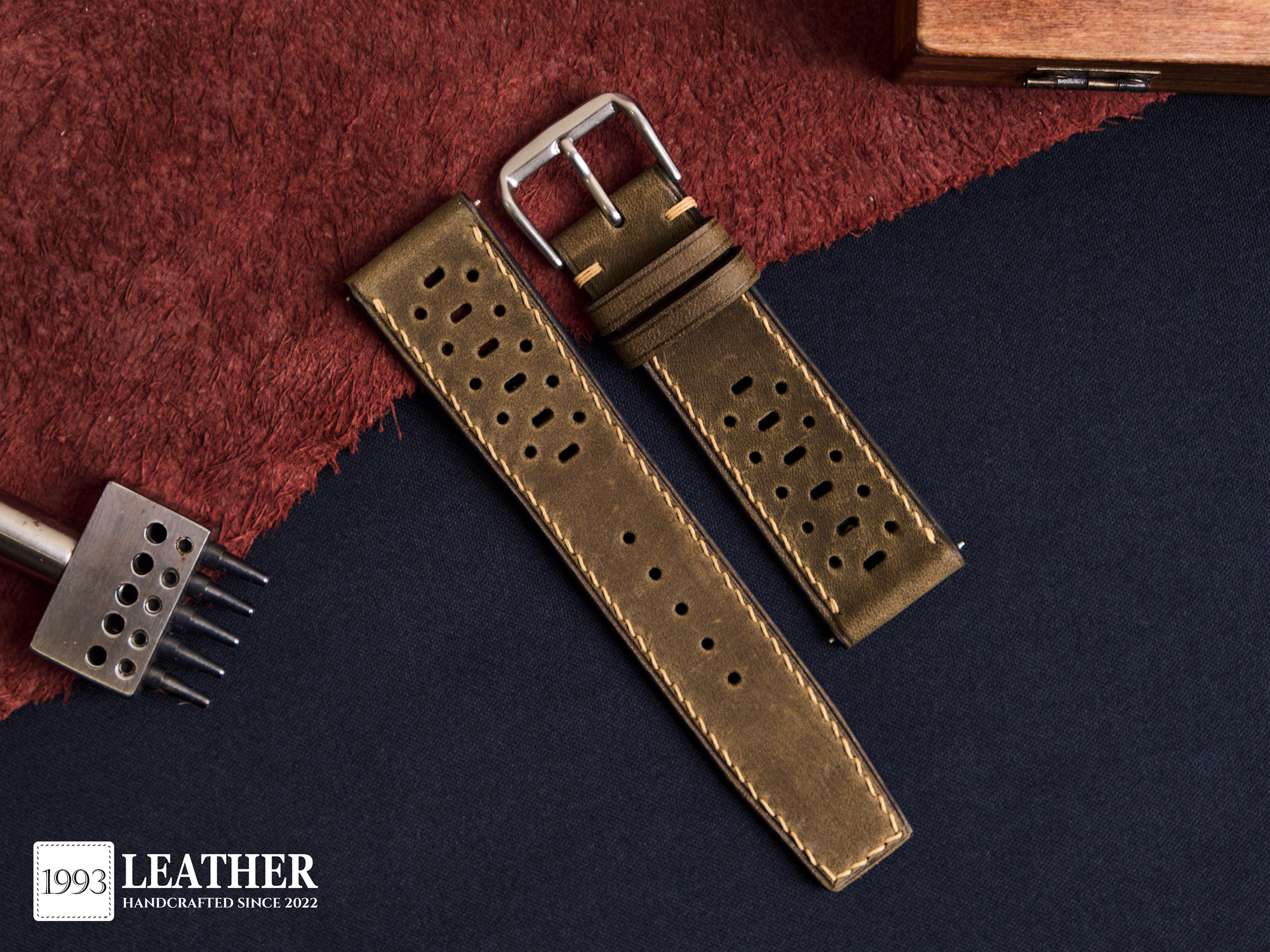 After all, we would like to introduce the olive perforated leather strap created as a perfect solution, harmonizing traditional leather bands with a sporty spirit.