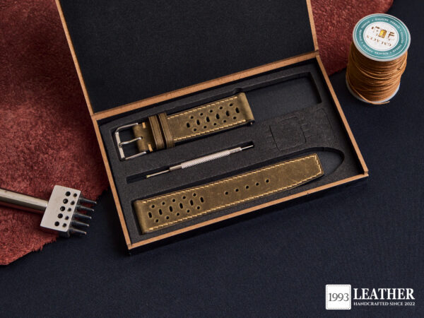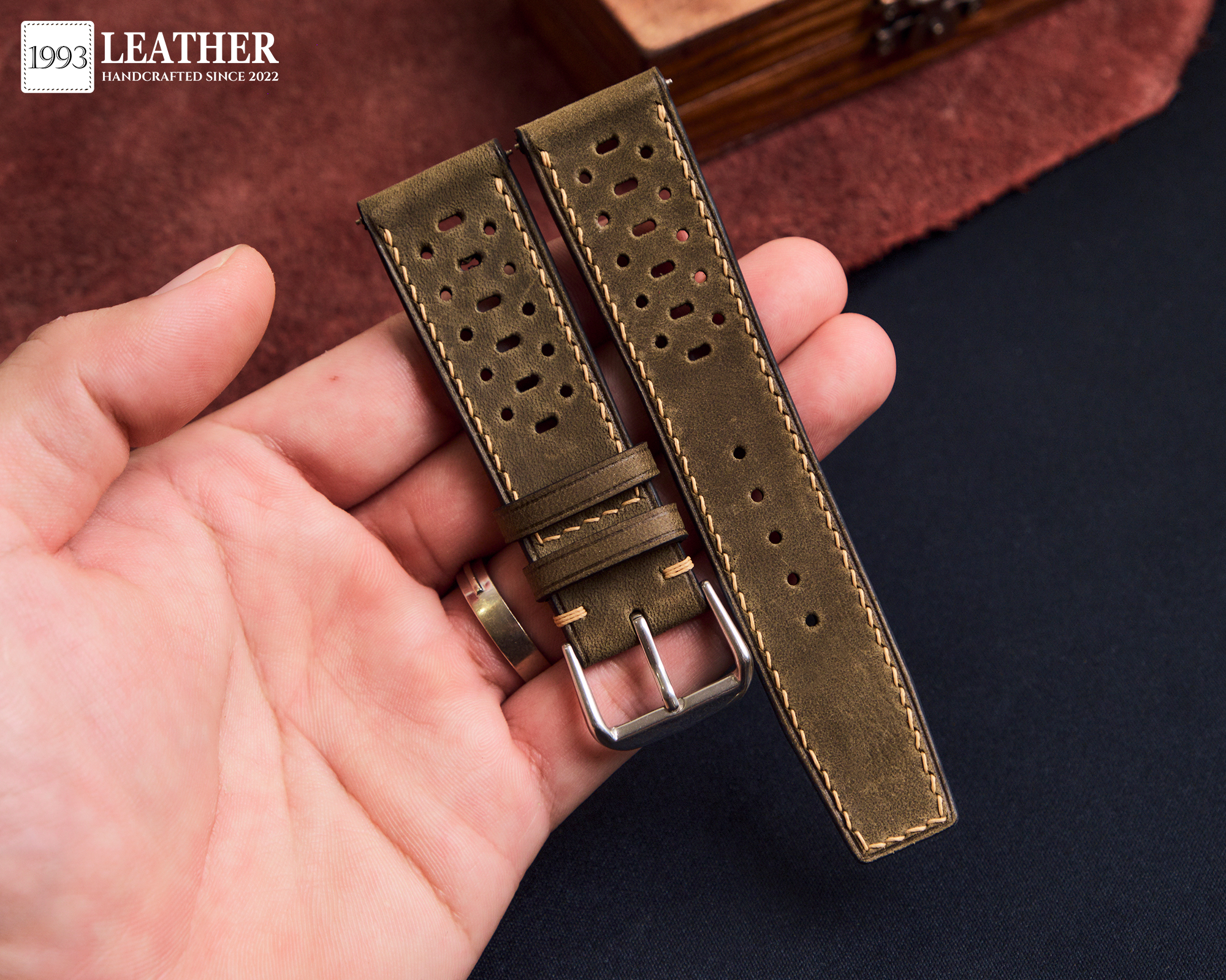 The olive perforated leather strap is the ideal choice for those who desire to wear their Apple Watch all day comfortably with the love of the military-outdoor style. What could be better than the trusted store can provide the durable, breathable, practical leather strap that still has a singular personality and we are an answer for this. Although our product is only a small detail, it is enough to completely change the daily Apple Watch wearing experience of any esteemed customer.
