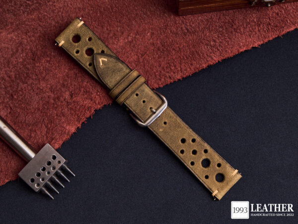 Superb leather material to handcraft the Olive Perforated Military Watch Strap